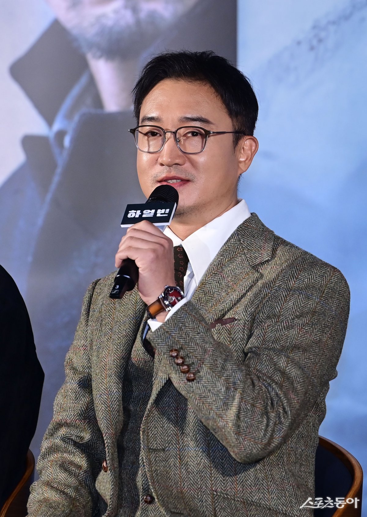 배우 조우진이 27일 서울 용산구 CGV용산아이파크몰점에서 열린 영화 ‘하얼빈’ 제작보고회에서 인사말을 하고 있다. 주현희 기자 teth1147@donga.com