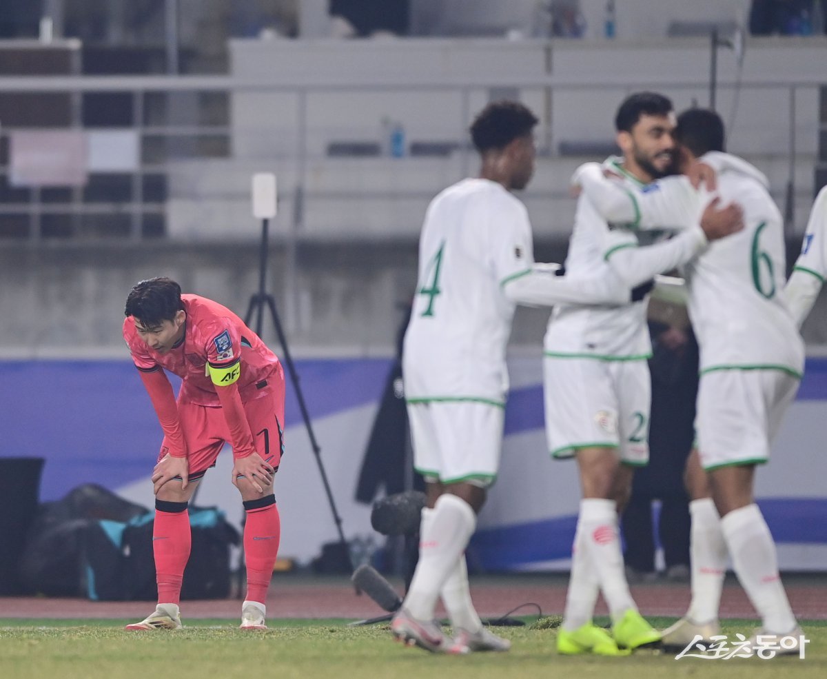 20일 고양종합운동장에서 열린 2026 국제축구연맹 북중미 월드컵 아시아 지역 3차예선 7차전 한국과 오만의 경기에서 1-1로 무승부를 기록한 한국 손흥민이 아쉬워하고 있다. 고양 | 주현희 기자 teth1147@donga.com