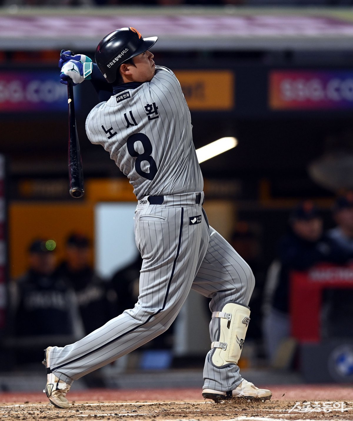 16일 인천 SSG 랜더스필드에서 ‘2025 신한 SOL 뱅크 KBO리그’ SSG 랜더스와 한화 이글스의 경기가 열렸다. 4회초 1사 3루에서 한화 노시환이 역전 투런 홈런을 쏘아 올리고 있다. 인천 | 김민성 기자 marineboy@donga.com