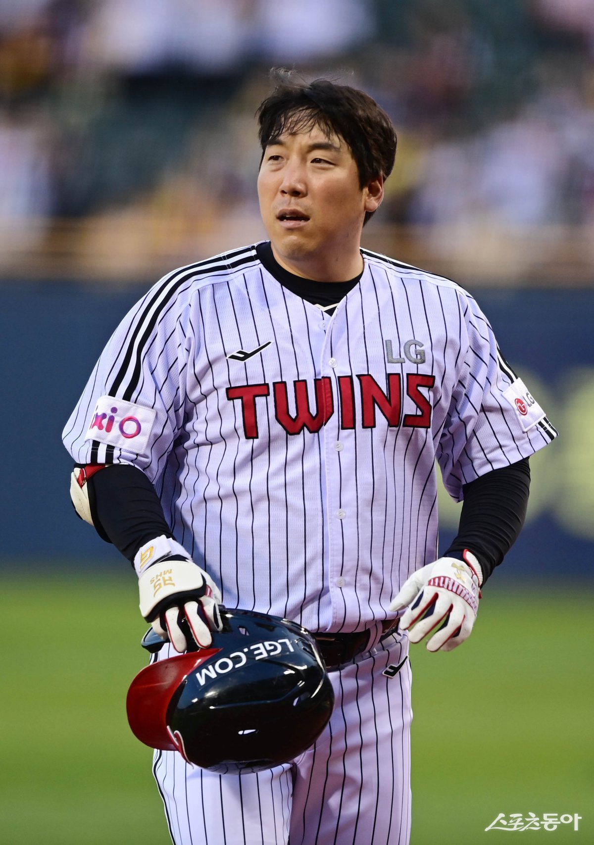 16일 서울 잠실야구장에서 열린 ‘2025 신한 SOL Bank KBO리그’ 삼성 라이온즈와 LG 트윈스의 경기에서 KBO리그 출전 2100경기 출전한 LG 김현수가 1회초 1사 땅볼을 친 후 아쉬워하고 있다. 잠실 | 주현희 기자 teth1147@donga.com