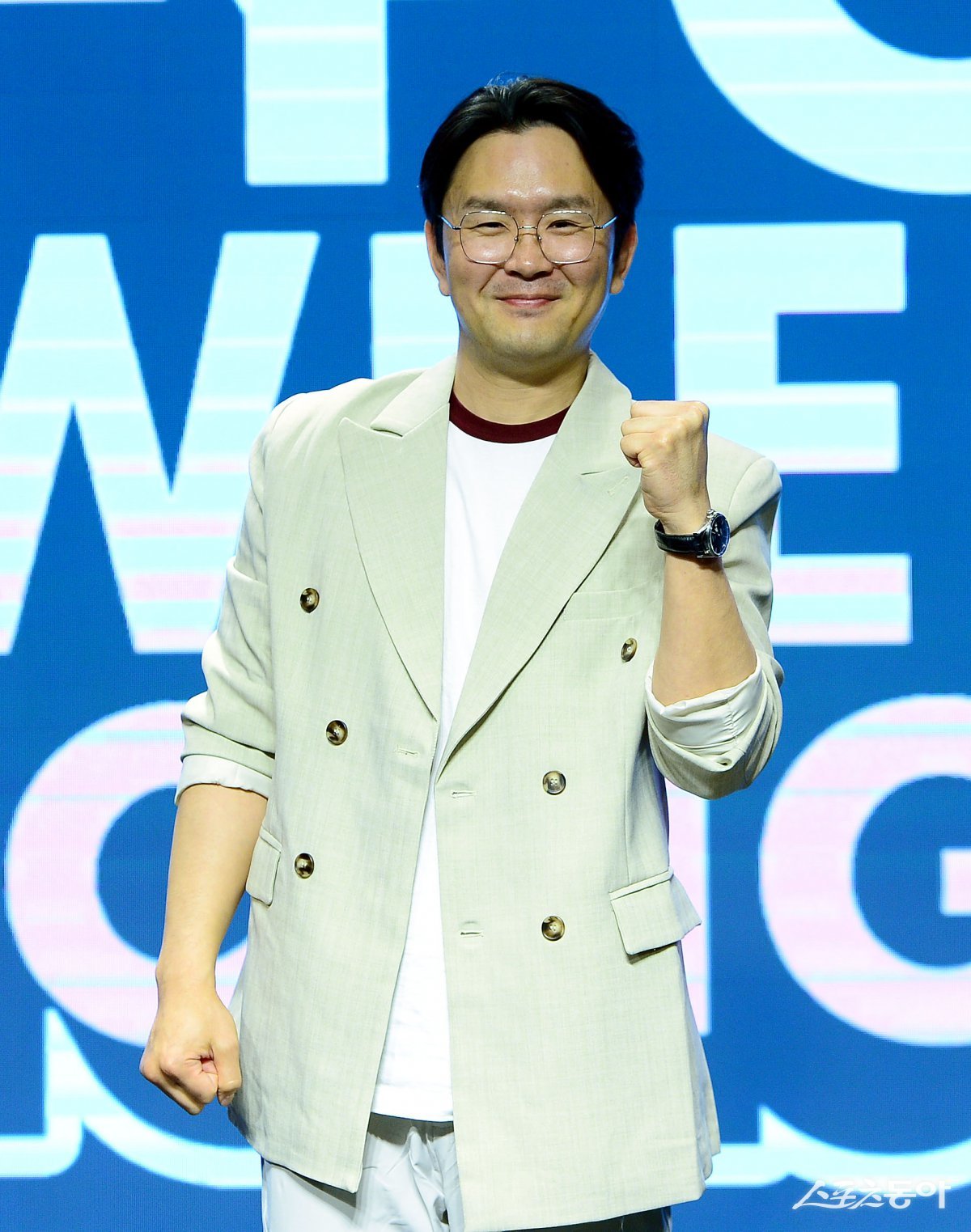 23일 서울 서교동 홍대 H-스테이지에서 ‘K-POP WEEK in HONGDEA(K팝 위크 인 홍대)’ 기자간담회가 열렸다. 개그맨 윤형빈이 카메라를 향해 포즈를 취하고 있다. 김민성 기자 marineboy@donga.com