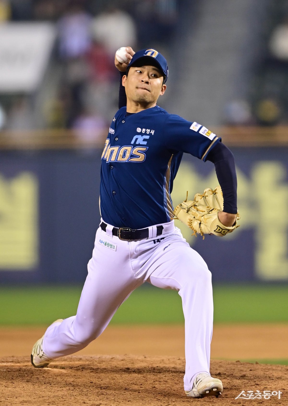 24일 서울 잠실야구장에서 열린 ‘2025 신한 SOL Bank KBO리그’ NC 다이노스와 LG 트윈스의 경기에서 9회말 NC 류진욱이 교체로 마운드에 올라 역투하고 있다. 잠실 | 주현희 기자 teth1147@donga.com