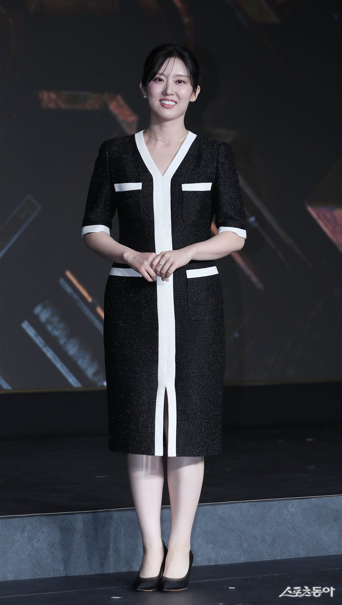 변호사 손은유가 29일 서울 마포구 마포동 호텔나루서울엠갤러리에서 열린 넷플릭스 ‘데블스 플랜 : 데스룸’ 제작발표회에서 포즈를 취하고 있다. 주현희 기자 teth1147@donga.com