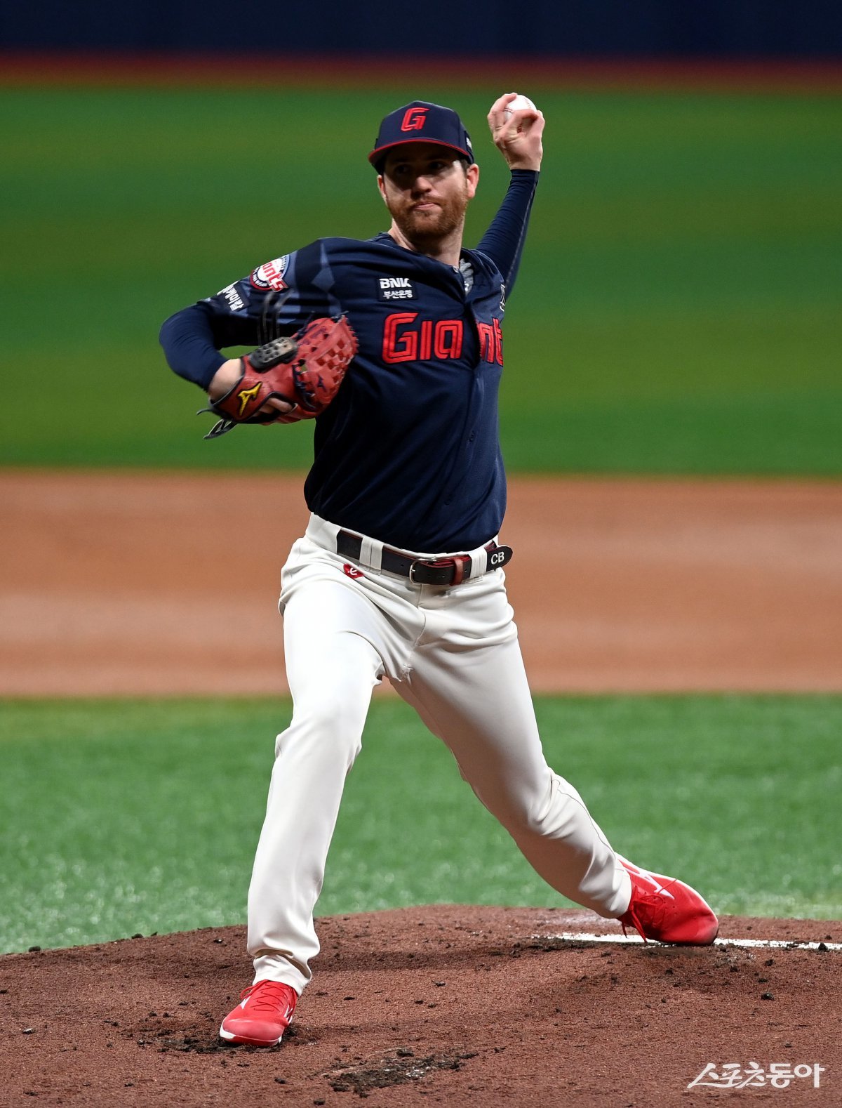29일 서울 고척스카이돔에서 ‘2025 신한 SOL 뱅크 KBO리그’ 키움 히어로즈와 롯데 자이언츠의 경기가 열렸다. 롯데 선발투수 반즈가 힘차게 볼을 던지고 있다. 고척 | 김민성 기자 marineboy@donga.com