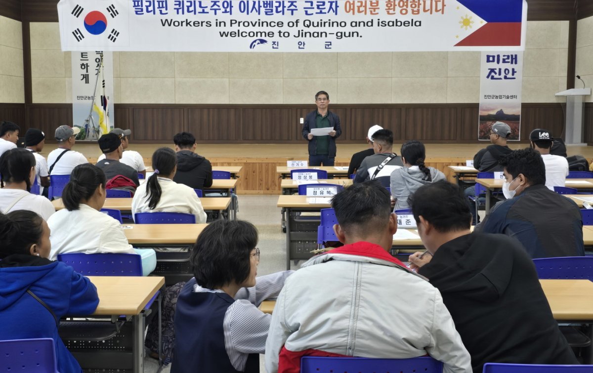 아울러, 이날 새벽 제4차로 단체 입국한 업무협약 체결국인 필리핀 농가형 계절근로자 37명도 진안군 농업기술센터 강당에 모여 근로계약 체결 및 노사관계, 인권침해 등 소정의 교육을 받고 각 고용농가에 배치됐다.