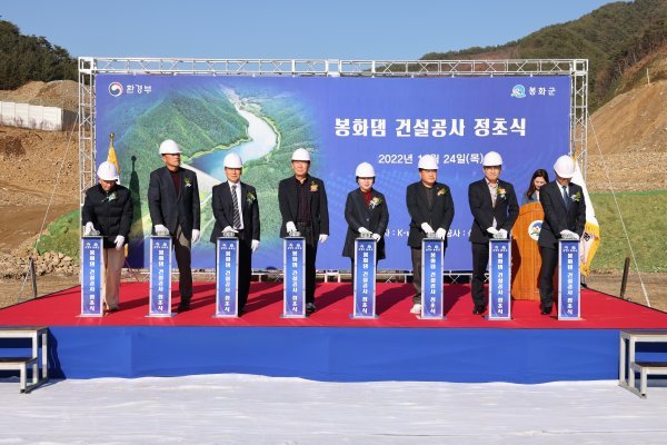 경북 봉화군 춘양면 애당리 일원에 건설 중인 ‘봉화댐’사업이 24일 정초식과 함께 본격화됐다.봉화군은 이날 ‘봉화댐’ 사업 현장에서 댐 축조를 시작하는 정초식을 열고 본격적인 댐 건설에 들어갈 계획이라 밝혔다.