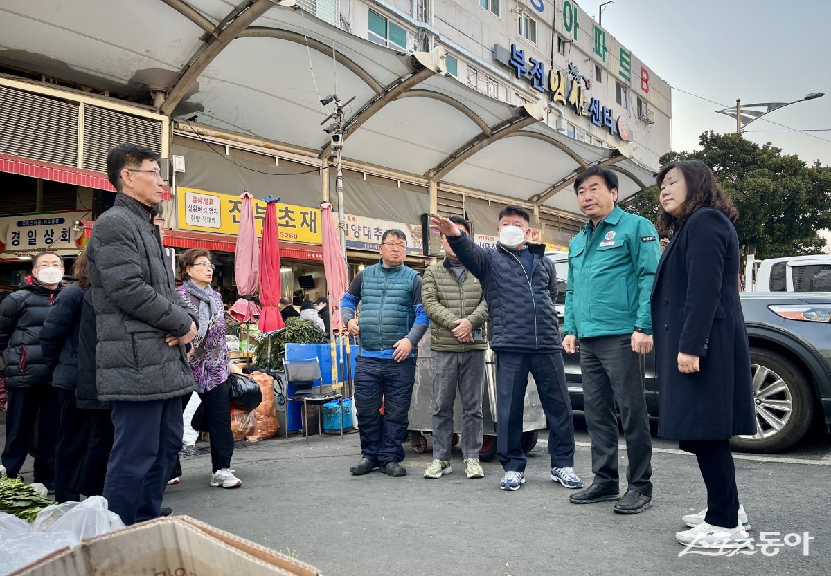 김영욱 부산진구청장이 지난 20일 부전마켓타운 등 관내 전통시장 4곳을 방문해 상인들과 장을 보러 나온 시민들을 만나 새해 덕담과 격려의 인사를 나눴다.