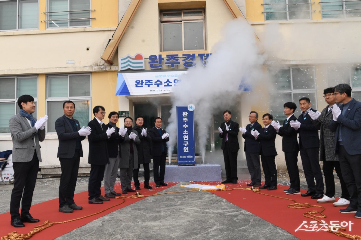 전북 완주군이 지난 22일 우석대학교와 함께 완주경제센터에서 수소연구원 개원식을 진행했다.