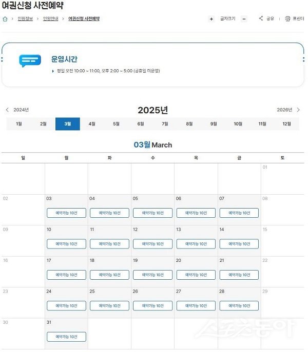 예약은 여권 신청에만 가능하다.