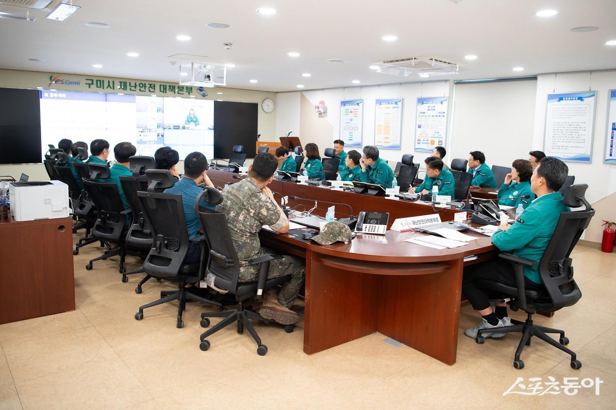 구미시가 재난, 안전사고 없는 안전한 도시 만들기에 나섰다. 사진은 김장호 구미시장 주재로 열리고 있는 재난안전 대책회의 광경. 사진제공ㅣ구미시