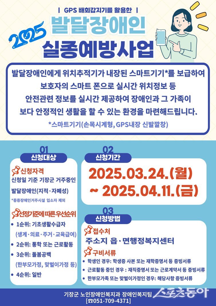 발달장애인 실종 예방 스마트기기 보급사업 안내문. (사진제공=기장군)