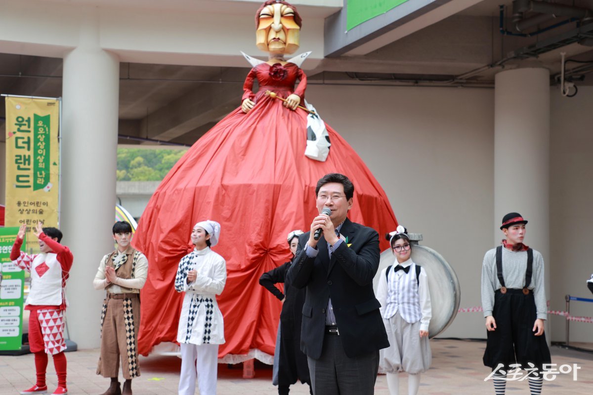이번 행사는 용인특례시와 용인문화재단(이사장 이상일 시장)이 공동 주최한 것으로, ‘이상한 나라의 앨리스’를 테마로 어린이들이 상상력을 마음껏 펼칠 수 있는 다채로운 공연과 체험 프로그램이 마련됐다.