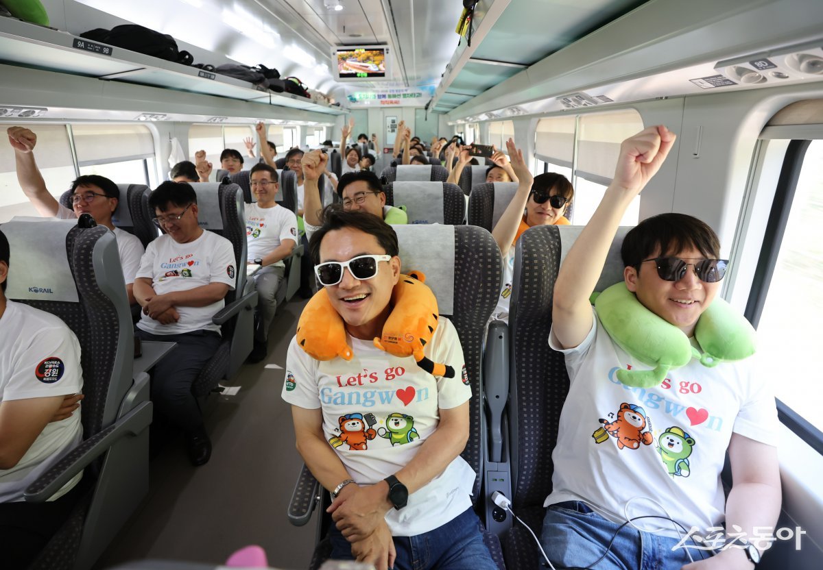 이날 오전 강릉역에서 열린 발대식을 시작으로 김진태 도지사는 도청 공무원 봉사단 및 강원관광재단 직원 60여 명과 함께 동해선 열차에 탑승, 부산으로 향했다. 열차 내부에서는 퀴즈쇼와 게임 등 다채로운 이벤트가 펼쳐졌다. 특히, 밝고 유쾌한 분위기 속에서 동해선 기차여행의 매력을 직접 체험했다.