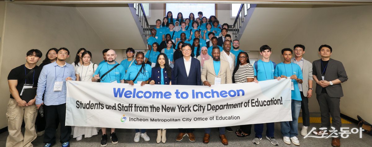 인천광역시교육청(교육감 도성훈)은 지난 14일 ‘인천·뉴욕 고교생 국제교류 프로그램’에 참여하기 위해 방한한 뉴욕 방문단을 환영하는 행사를 열고, 본격적인 양 도시 학생 간 국제 교류의 시작을 알렸다. 사진제공|인천광역시교육청