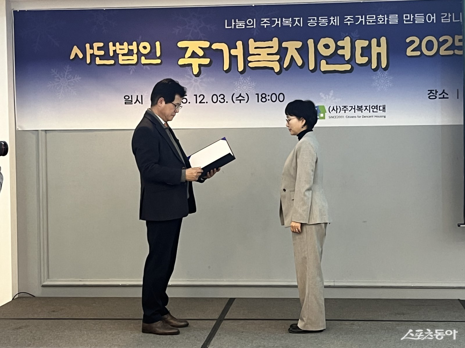 이 상은 주거취약계층의 주거권 보장과 주거복지 정책 발전에 기여한 인물과 단체를 선정해 그 노고를 격려하기 위해 제정된 상으로, 이날 시상식은 (사)주거복지연대가 주관해 공로 및 표창 수여 순서와 함께 진행됐다.