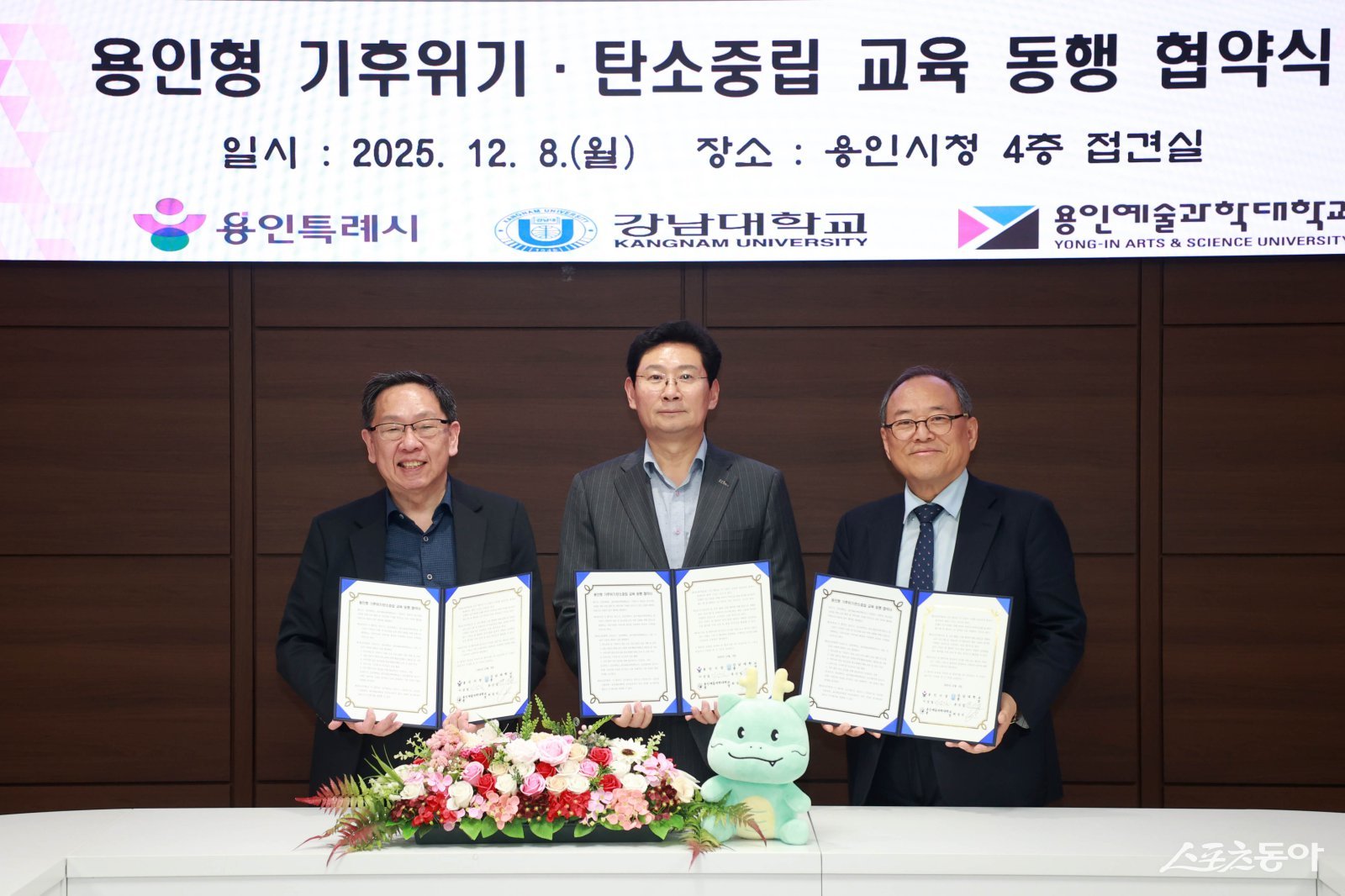 용인특례시(시장 이상일)는 지난 8일 시청 접견실에서 강남대학교, 용인예술과학대학교와 ‘용인형 기후위기·탄소중립 교육 동행 협약’을 체결했다고 밝혔다.