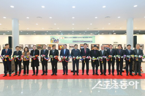 ‘경주–나라시 자매결연 55주년 기념 사진전’ 개회식에서 내빈들이 테이프 컷팅을 하고 있다. 사진제공 ㅣ 경주시