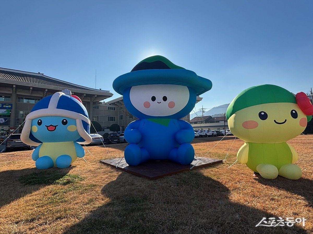 전남 여수시는 2026여수세계섬박람회에 대한 시민들의 관심을 높이고 관내 홍보를 강화하기 위해 시청 본청사 잔디광장에 5m 규모의 대형 마스코트 조형물을 22일 설치했다.여수시, 섬박람회 홍보 ‘압도적 존재감’
