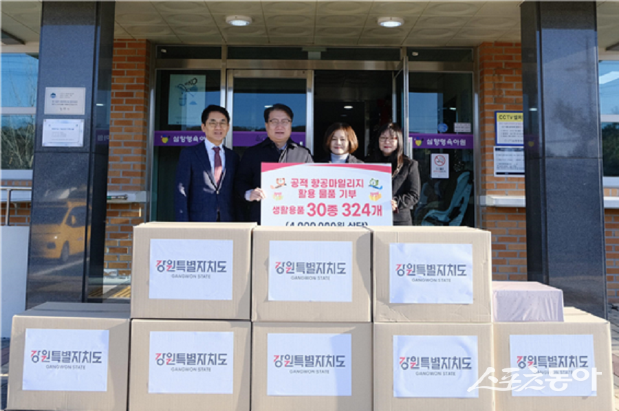 강원특별자치도는 지난 26일 도청 직원들이 자발적으로 기부한 공적 항공마일리지를 활용해 약 400만 원 상당의 생활용품 320여 점을 마련, 도내 아동복지시설에 전달했다고 밝혔다.