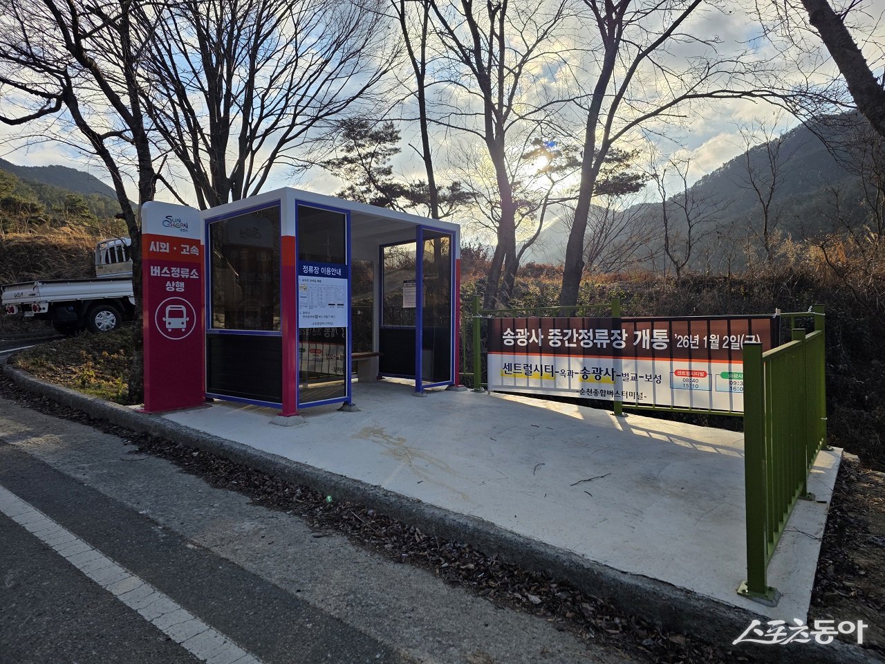 이번 송광사 경유 노선은 지난해 11월 정류장 설치 공사를 시작해 12월 준공을 마쳤으며, 매일 2회 운행된다.