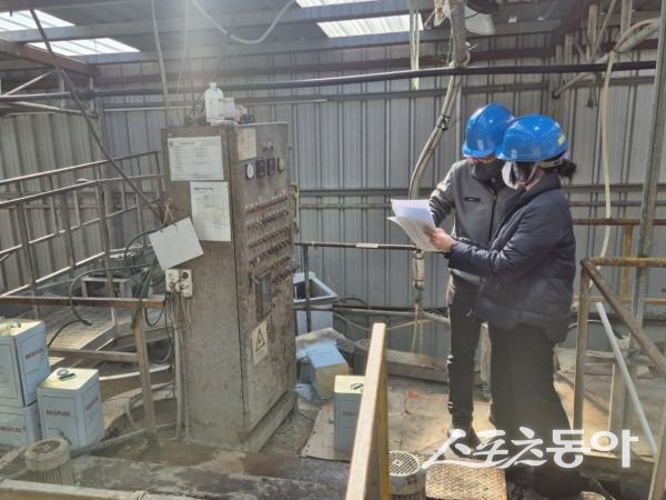 김천시가 관내 환경오염물질 배출업소 400개소를 대상으로 통합지도·점검을 진행하고 있는 모습. 사진제공ㅣ김천시