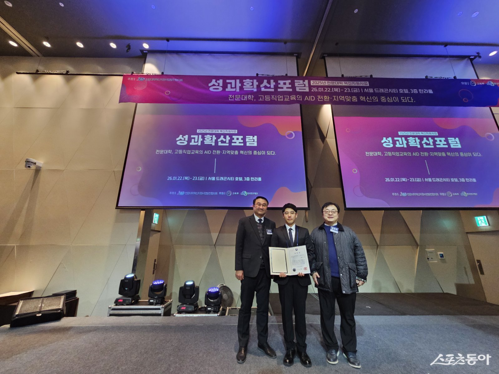 동의과학대학교(총장 김영도) 기획부 황영태 직원이 지난 22일 서울드래곤시티 컨벤션타워 한라홀에서 열린 ‘2025년 전문대학 혁신지원사업 성과확산포럼’에 참가해 2025년 전문대학 혁신지원사업 유공자로 선정돼 부총리 겸 교육부장관 표창을 수상했다.
