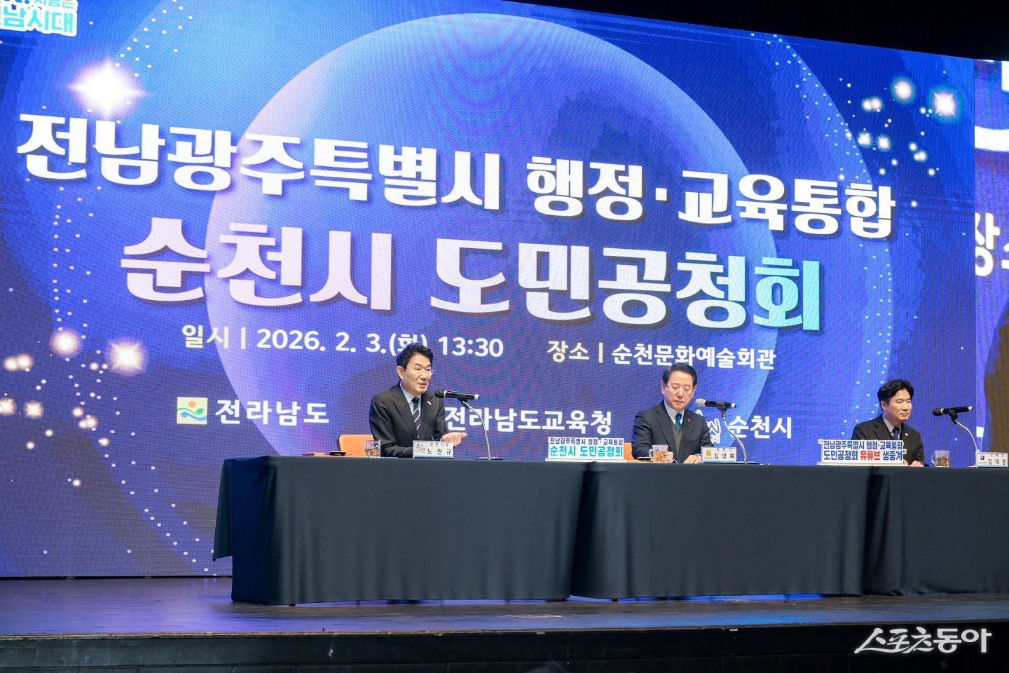 순천시와 전남도가 3일 전남·광주 행정통합 도민 공청회를 열고 시민 의견을 수렴했다.노관규 시장 “반도체 산단 등 구조 재편 필요”