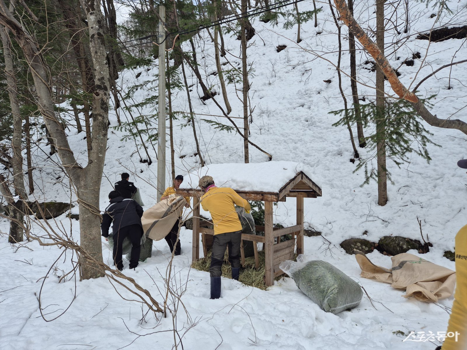 삼척시는 오는 10일 가곡면 풍곡리 일원 산양 주요 서식지에서 겨울철 산양 먹이주기 행사를 진행한다고 9일 밝혔다.