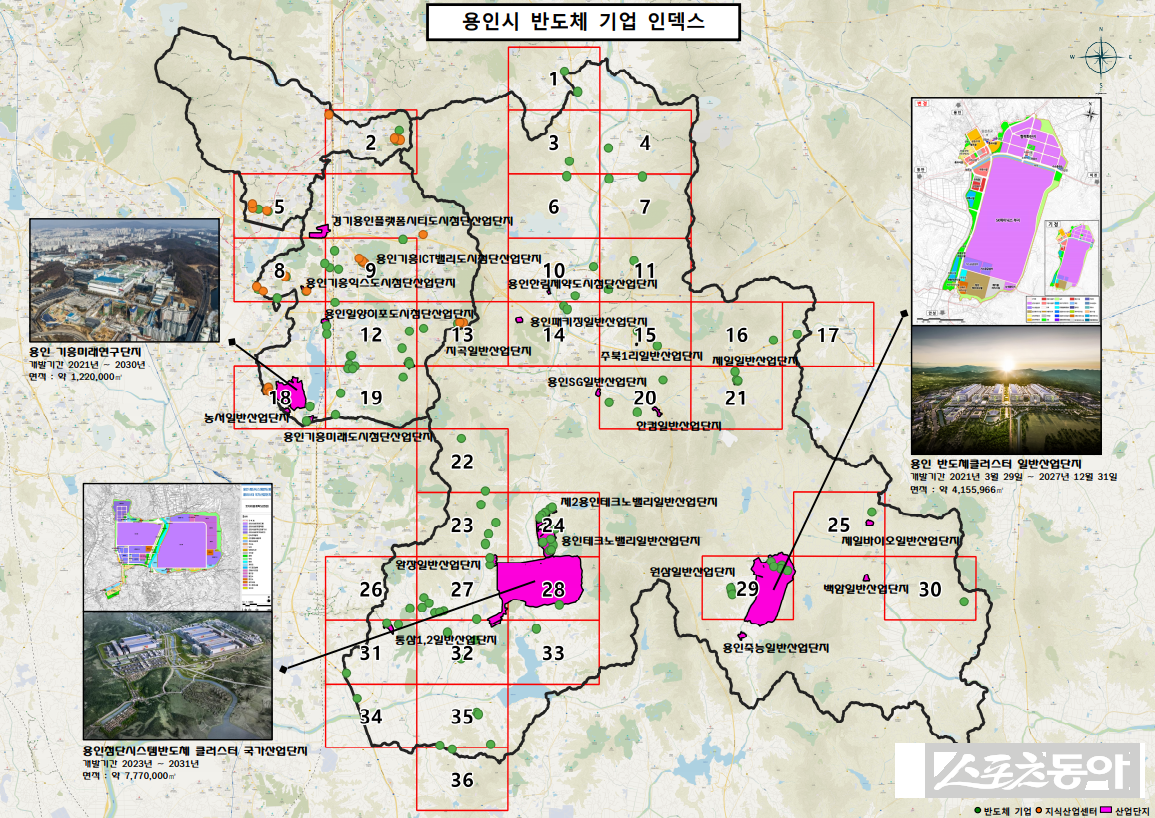 용인특례시(시장 이상일)는 단일 도시 기준 세계 최대 규모로 조성 중인 반도체 클러스터 현황을 시민들이 쉽게 이해할 수 있도록 ‘용인 반도체 지도’를 제작해 시 누리집에 공개했다. 사진제공|용인시