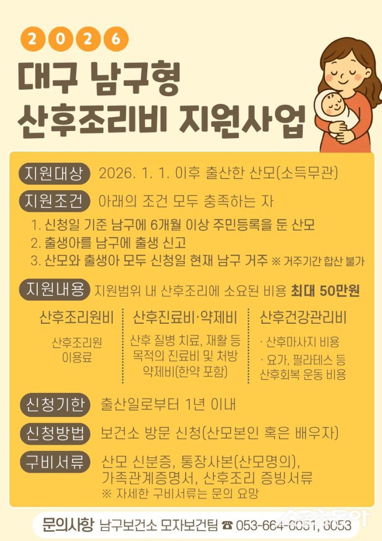 대구 남구 산후조리비 지원 사업 포스터. 사진제공ㅣ대구 남구
