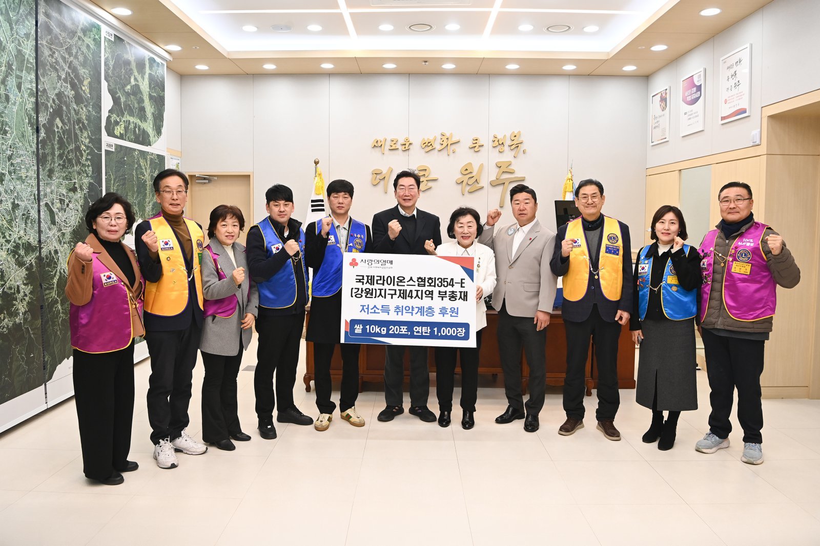 원주 국제라이온스협회(354-E지구 제4지역)가 저소득 취약계층에 쌀과 연탄을 전달했다.