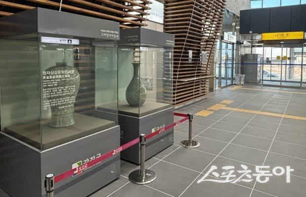 강진고려청자박물관이 강진역에서 특별한 부스를 마련해 상설 청자 를 전시 하고 있다. 사진제공│강진군