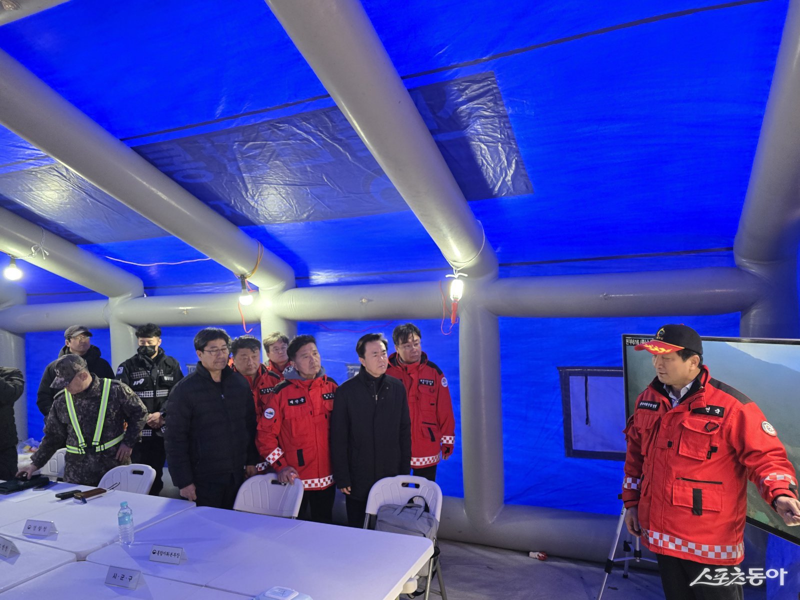김태흠 충청남도지사는 22일 예산군 대술면 산불 현장 인근에 설치된 산불현장통합지휘본부를 찾아 진화 상황을 점검했다. 사진제공|충남도