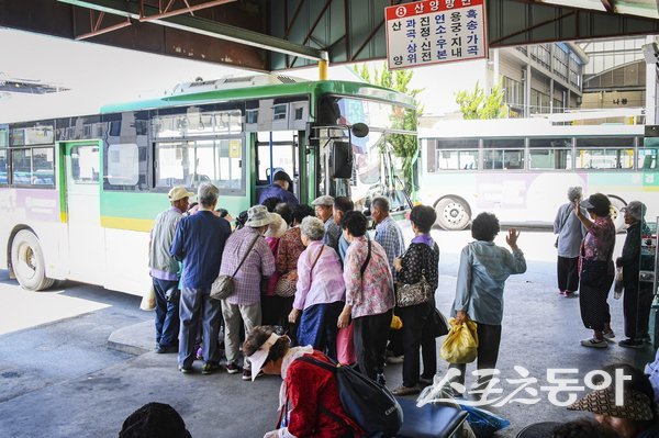 문경 시민들이 줄지어 시내버스에 타고 있는 모습. 사진제공ㅣ문경시