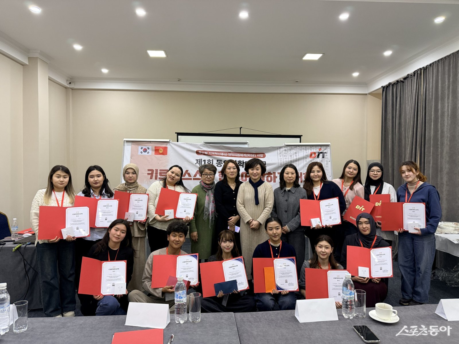 제1회 키르기스스탄 한국어 말하기 대회 시상식 기념 촬영 사진. (사진제공=동의과학대)