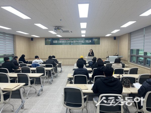 이번 교육은 지난달 군 임대형 스마트팜단지에 입주한 토마토·딸기 재배 농업인을 대상으로 GAP 제도에 대한 이해를 높이고, 안전한 농산물 생산과 소비자 신뢰 확보를 위해 마련됐다.