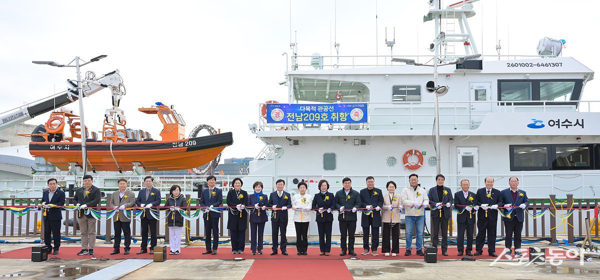 남해안의 중심, 여수시(시장 정기명)가 수산자원 보호와 어업 질서 확립을 위한 새로운 해상 병기를 실전 배치했다. 여수시는 지난 2월 27일 여수 엑스포항 일원에서 최첨단 다목적 관공선 ‘전남 209호’의 취항식을 열고 본격적인 해상 행정 서비스에 돌입했다고 밝혔다.정기명 시장 “9월 섬박람회 성공 개최의 견인차… 해상 대응력 극대화할 것”