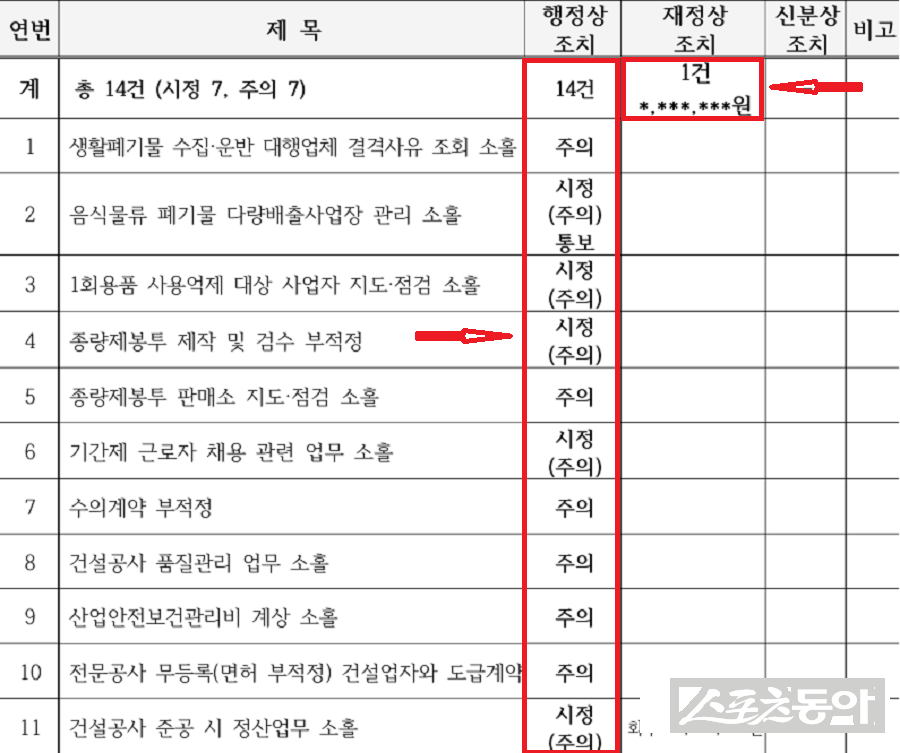 범죄경력 조회 패싱한 폐기물 계약·서류 없는 특정인 채용 등 14건 무더기 적발