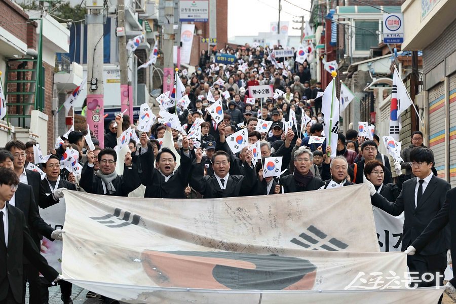 특히 1919년 제작된 것으로 알려진 진관사 태극기를 재현한 태극기를 사용해 상징성을 더했으며, 행진 중에는 일본 헌병의 저지에도 굴하지 않던 당시 만세운동 장면을 재현하는 퍼포먼스가 펼쳐져 현장감을 높였다.