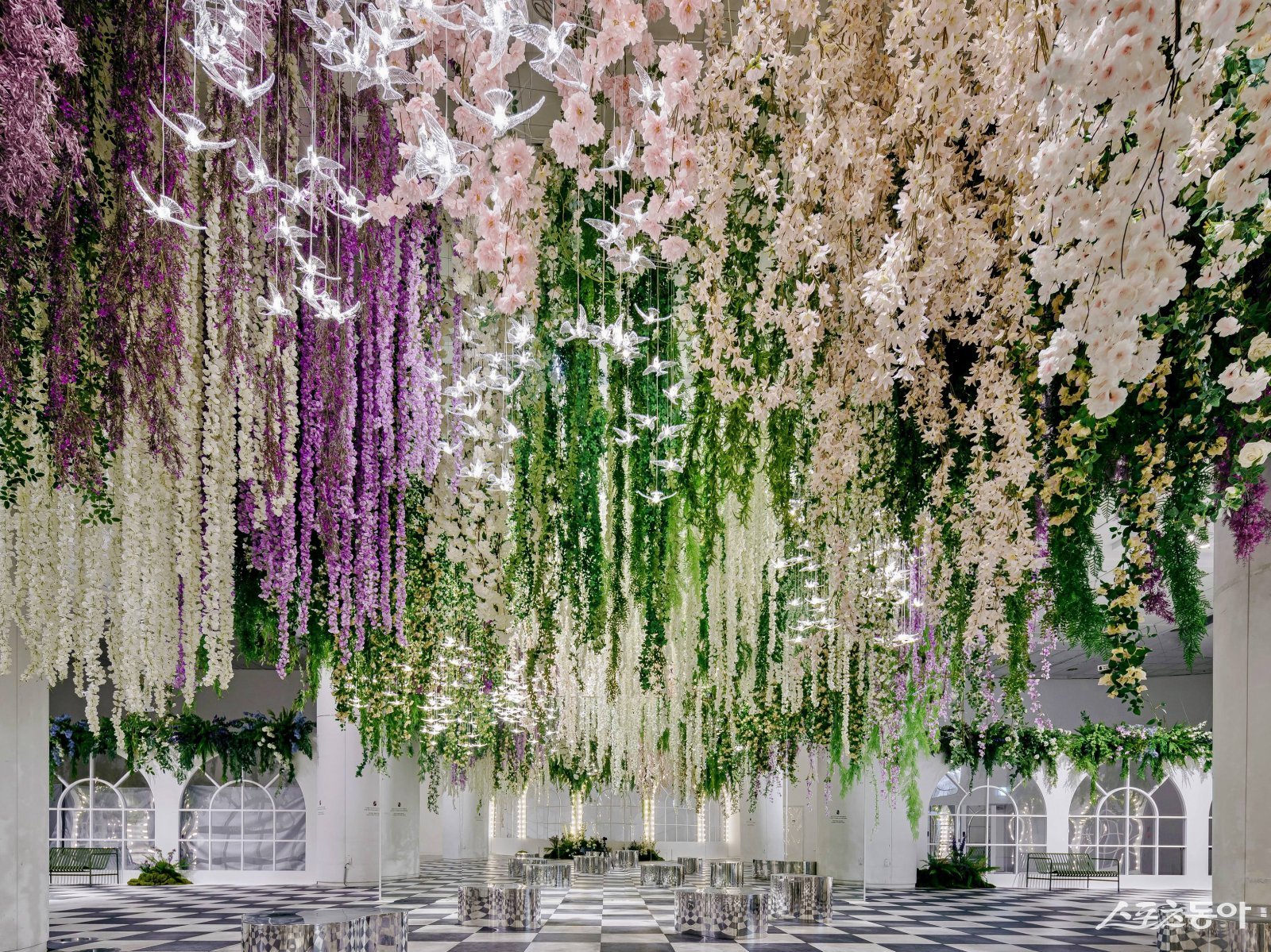 클로드 모네의 작품을 오마주한 이번 연출은 수국, 등나무꽃, 델피늄 등 보랏빛과 분홍빛 꽃을 메인으로 하고, 새 모형의 조명을 더해 생동감 넘치는 봄의 분위기를 표현하였다.