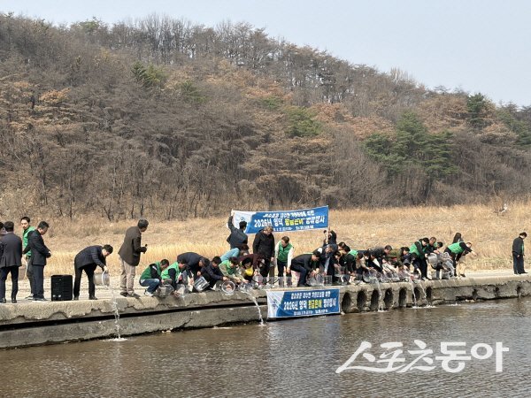 영덕군이 오십천을 비롯한 주요 하천에 어린 황금은어 40만 마리를 방류했다. 사진제공 ㅣ 영덕군