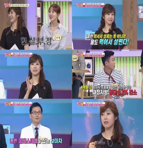 강수정은 "물만 마셔도 살 찌는 사람들이 있지 않냐"면서 본인도 이 같은 경우에 해당한다고 고백해 눈길을 끌었다. 강수정의 푸념 섞인 고백에 \'엄지의 제왕\' 송재철 한의학 박사는 "물만 마셔도 살찌는 사람은 없다. 아시다시피 물의 칼로리는 0"이라고 단호히 설명했다.