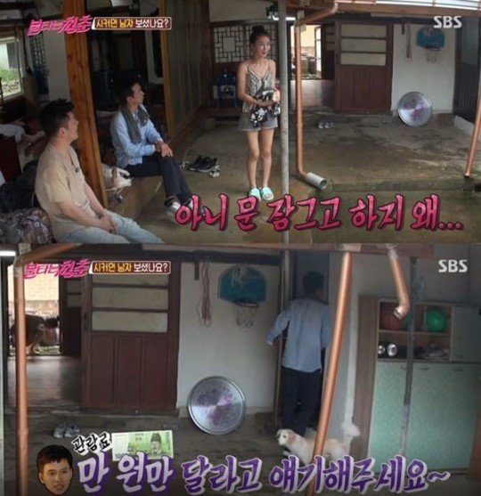 곽진영은 잠금장치가 고장난 화장실 문으로 인해 의도치 않게 구본승의 샤워 장면을 목격했다.