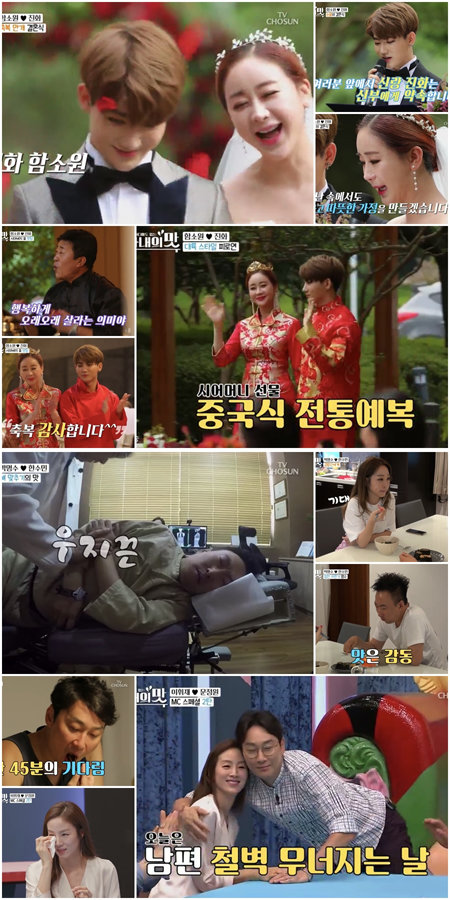 지난 21일(화) 밤 10시 방송된 TV조선 ‘세상 어디에도 없는, 아내의 맛’ 12회 분에서는 18살 나이 차이를 극복해 마침내 결혼에 성공한 함소원-진화 부부의 웨딩마치와 박명수-한수민, 이휘재-문정원의 ‘현실 부부 생활’의 속사정이 낱낱이 공개됐다.