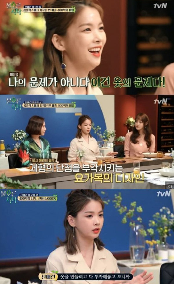 연매출 400억 원을 자랑하는 요가복 브랜드 신애련 대표가 tvN ‘물오른 식탁’에 출연해 매출 400억 달성 신화를 언급했다.