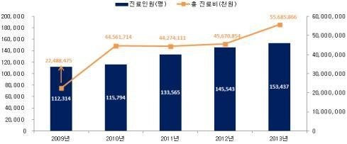 황반변성 진료인원 및 총 진료비 추이 (2009년~2013년)