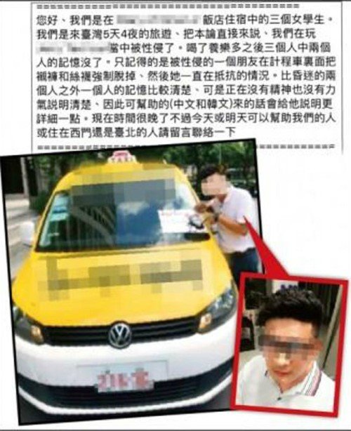 대만에서 관광을 하던 한국 여성 여행객 2명이 ‘택시투어’ 기사에 성폭행을 당했다.