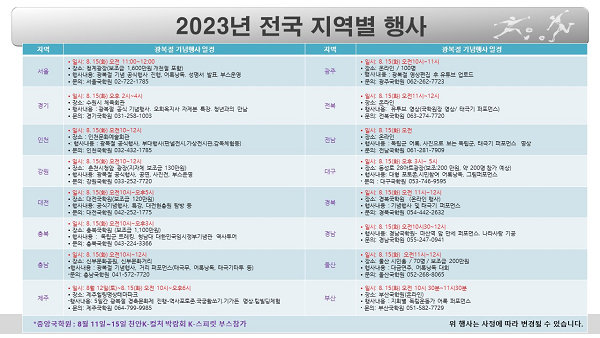 이어 올해 광복절도 국민과 함께하는 축제 형태로 개최될 것이며 이러한 전통을 이어받아 전국 지부에서 다채로운 행사를 진행한다고 했다.