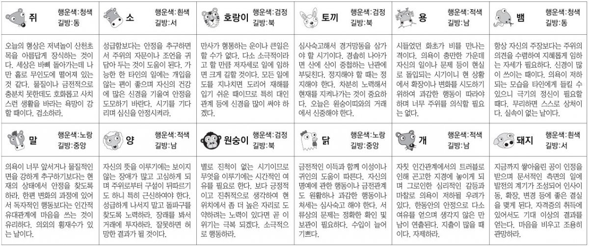 ■ 스포츠동아 오늘의 운세 띠별|운수 좋은 날 (음력: 10월 28일)