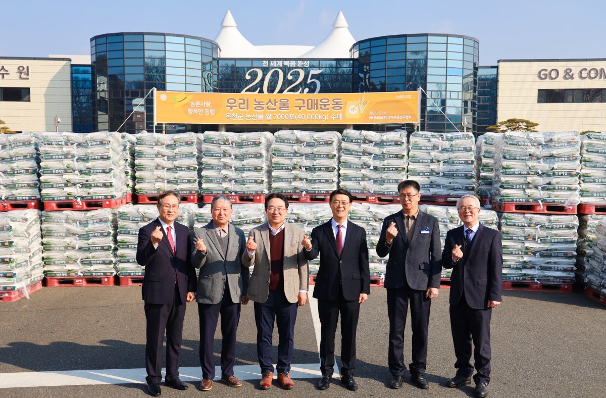 이날 하나님의 교회 옥천고앤컴연수원에서 진행된 수매식에는 황규철 옥천군수, 이현철 옥천군농업기술센터 소장 등 지자체 관계자들도 참석했다. 황규철 군수는 “옥천의 친환경 쌀을 구매해주셔서 감사드린다”고 인사한 뒤 “앞으로도 옥천군과 상생하는 관계가 되면 좋겠다”고 기대했다.